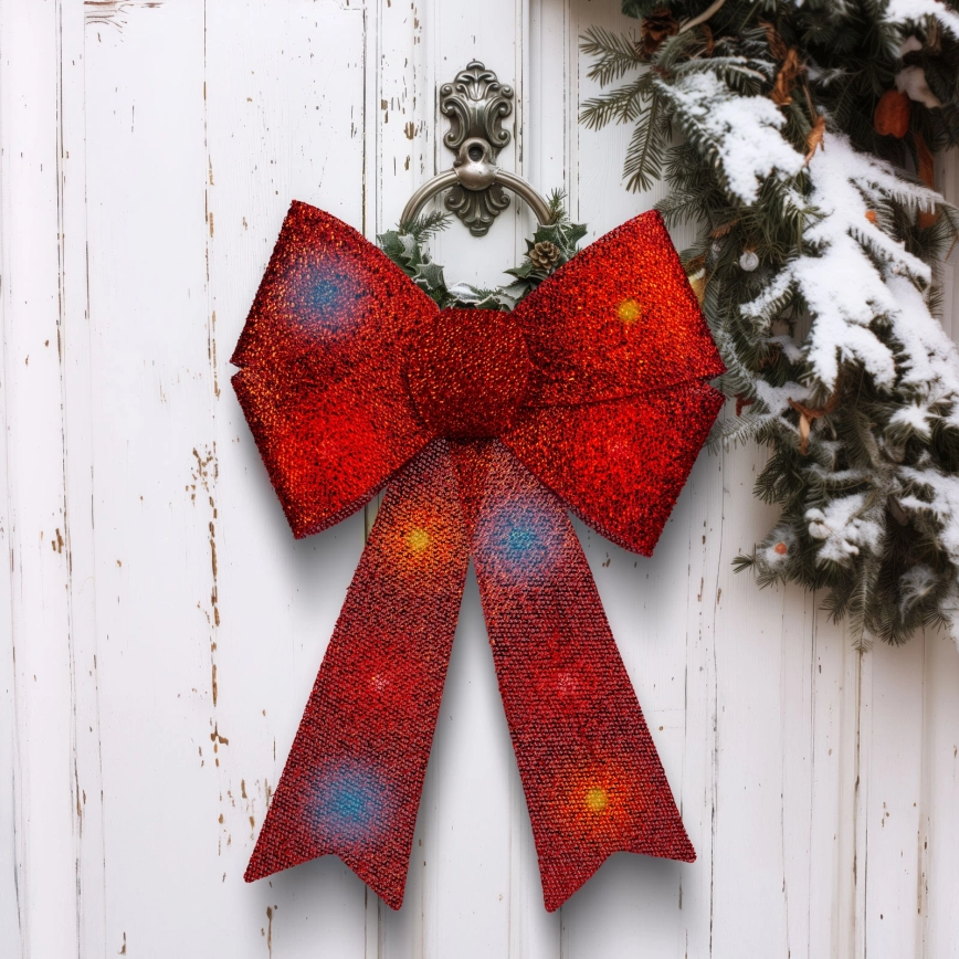 Décoration de Noël LED RVB 11xLED/3xLR44 40x30 cm nœud rouge