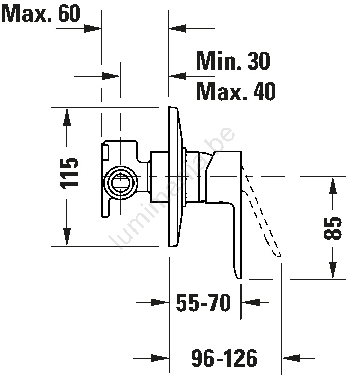 • Mitigeur de douche monocommande conçu pour une installation encastrée.