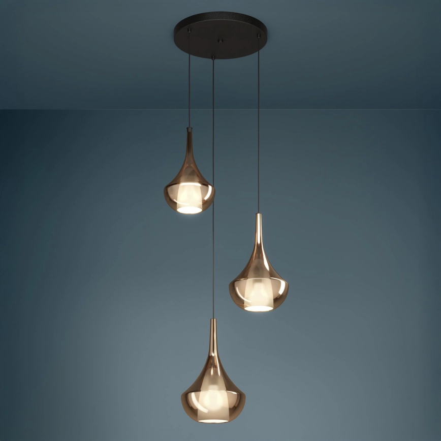Eglo - Lustre suspendu sur câble 3xE27/28W/230V, finition cuivre caractérise un design agréable et fonctionnel.  Une ampoule à culot E27 convient pour ce luminaire. Ici, vous pouvez acheter d'autres ampoules à des prix avantageux. Vous aurez un ajout intéressant dans votre intérieur.