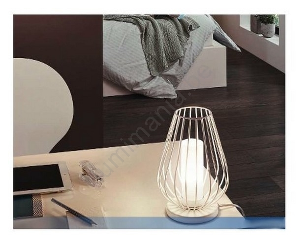 • Lampe moderne au design élégant avec un abat-jour extérieur en fil métallique, l'abat-jour intérieur est en verre blanc.