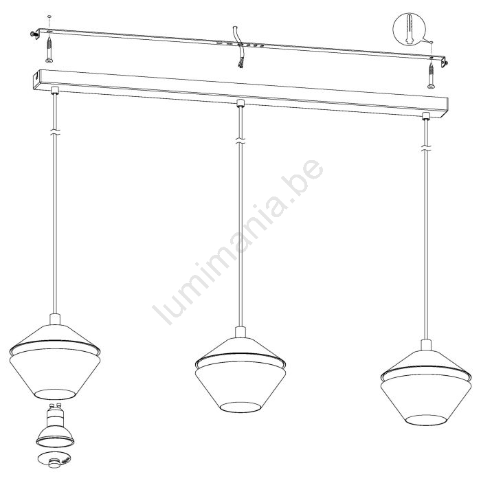 Eglo 98682 - Suspension LED sur câble PERPIGO 3xGU10/5W/230V caractérise un design agréable et fonctionnel.  Une ampoule à culot GU10 convient pour ce luminaire. Ici, vous pouvez acheter d'autres ampoules à des prix avantageux. Vous aurez un ajout intéressant dans votre intérieur.