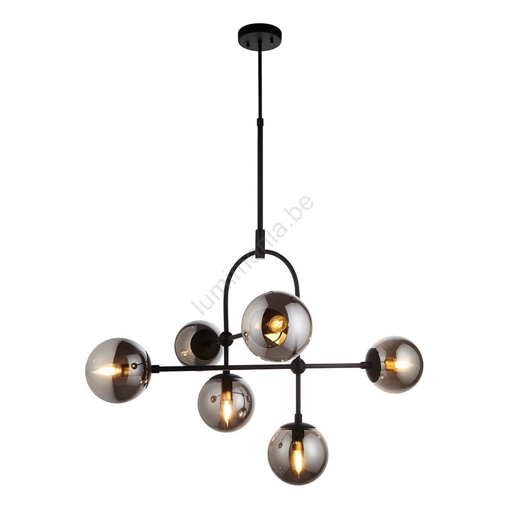 Endon 106661 - Suspension sur tige ONTARIO 6xE14/7W/230V noir/noir fumé