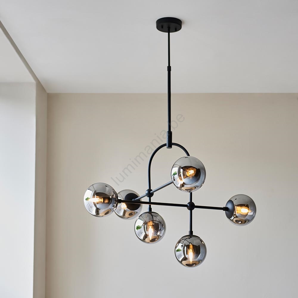 Endon 106661 - Suspension sur tige ONTARIO 6xE14/7W/230V noir/noir fumé caractérise un design agréable et fonctionnel.  Une ampoule à culot E14 convient pour ce luminaire. Ici, vous pouvez acheter d'autres ampoules à des prix avantageux. Vous aurez un ajout intéressant dans votre intérieur.