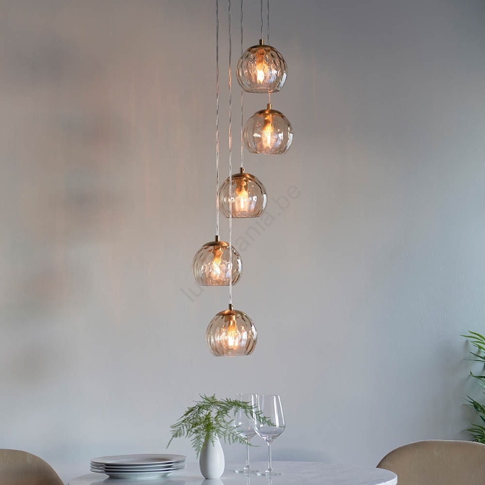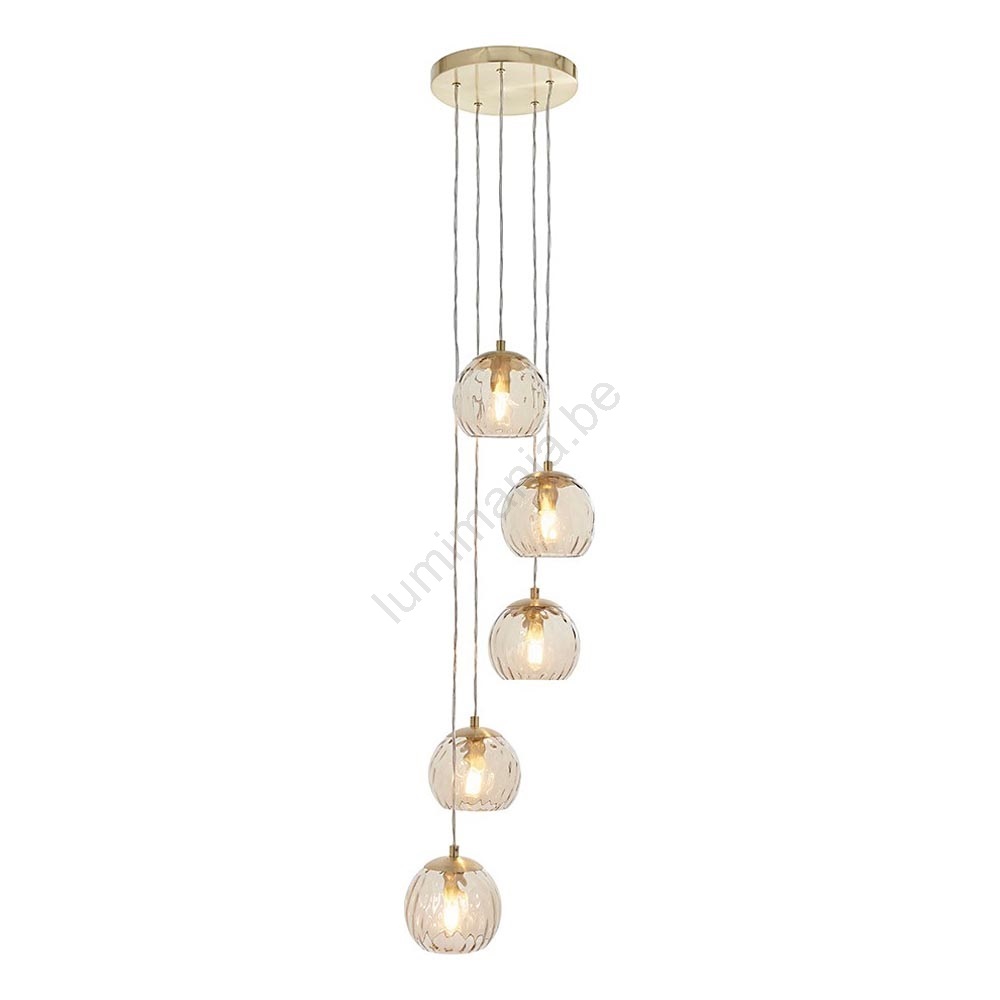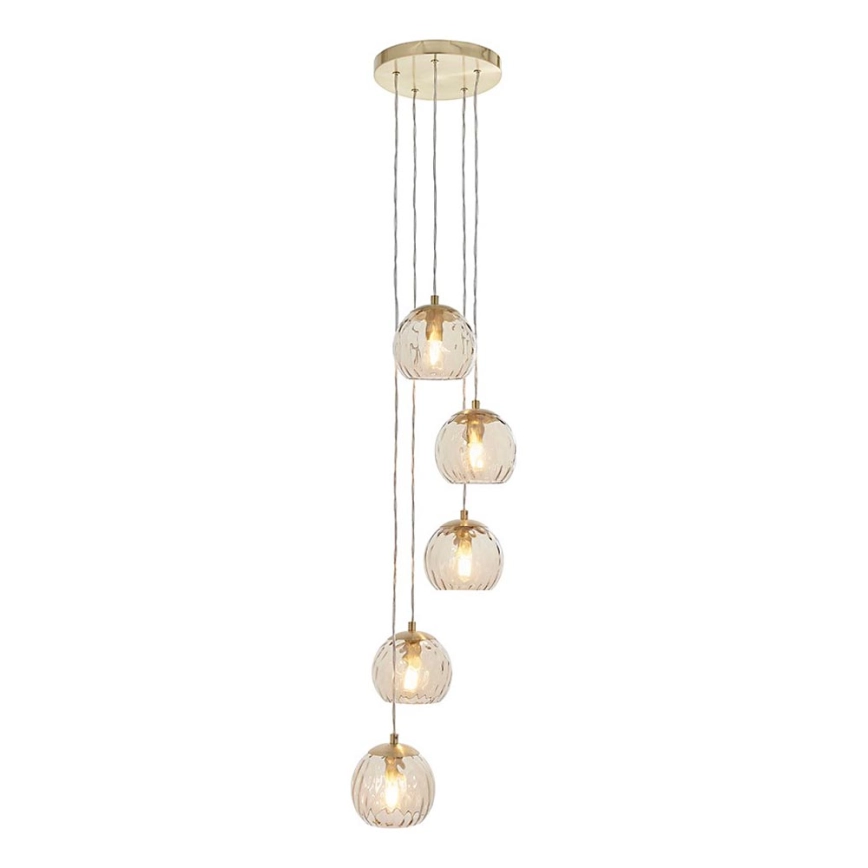 Endon 91972 - Suspension sur câble DIMPLE 5xE14/7W/230V doré/beige fumé caractérise un design agréable et fonctionnel.  Une ampoule à culot E14 convient pour ce luminaire. Ici, vous pouvez acheter d'autres ampoules à des prix avantageux. Vous aurez un ajout intéressant dans votre intérieur.
