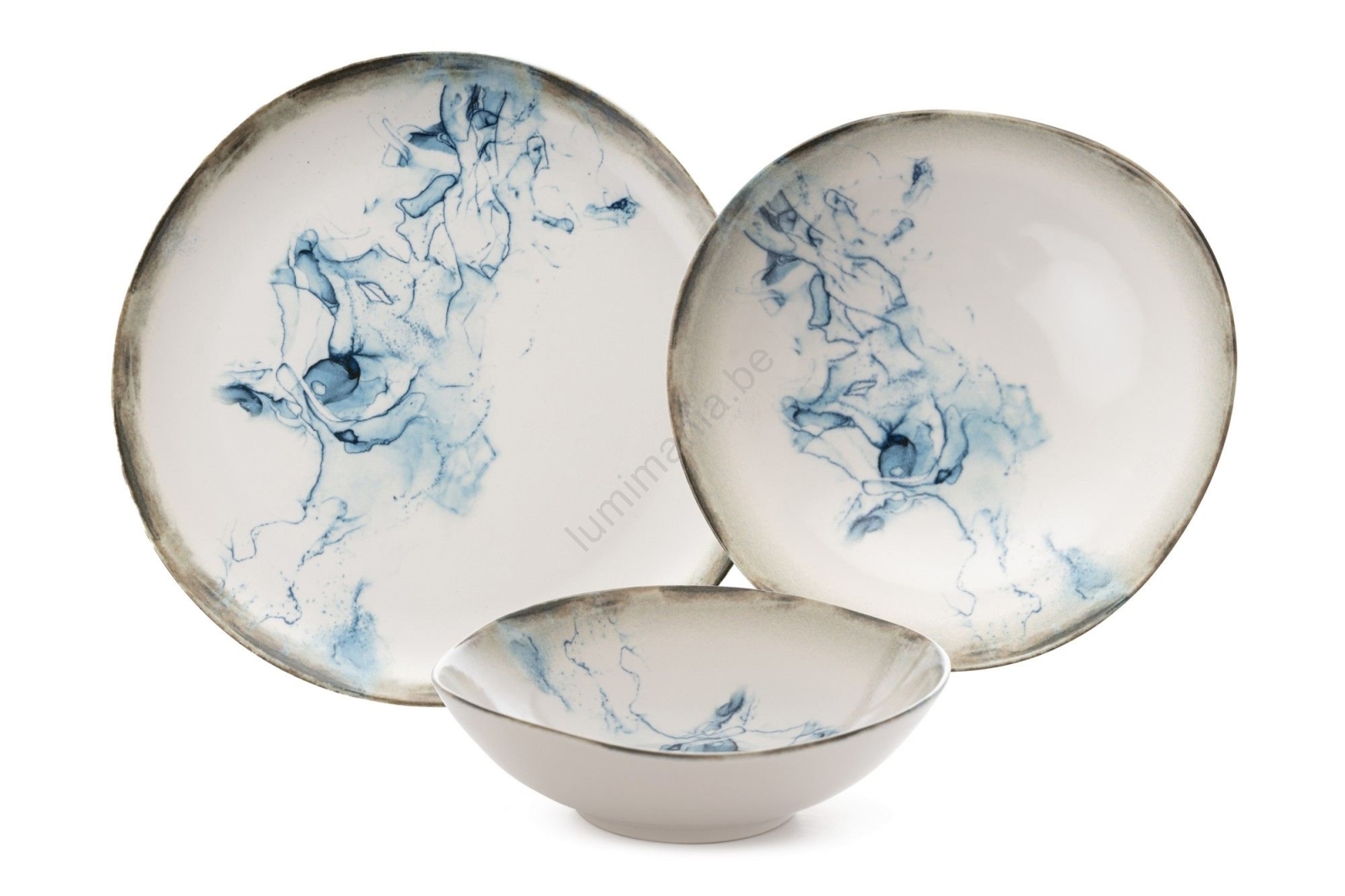 Ensemble de vaisselle 24 pièces en porcelaine, blanc/bleu