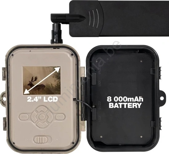 • Contenu du colis : Caméra de chasse, antenne 4G, carte SD 16GB, carte SIM, sangle de fixation, câble USB-C, manuel d'utilisation.