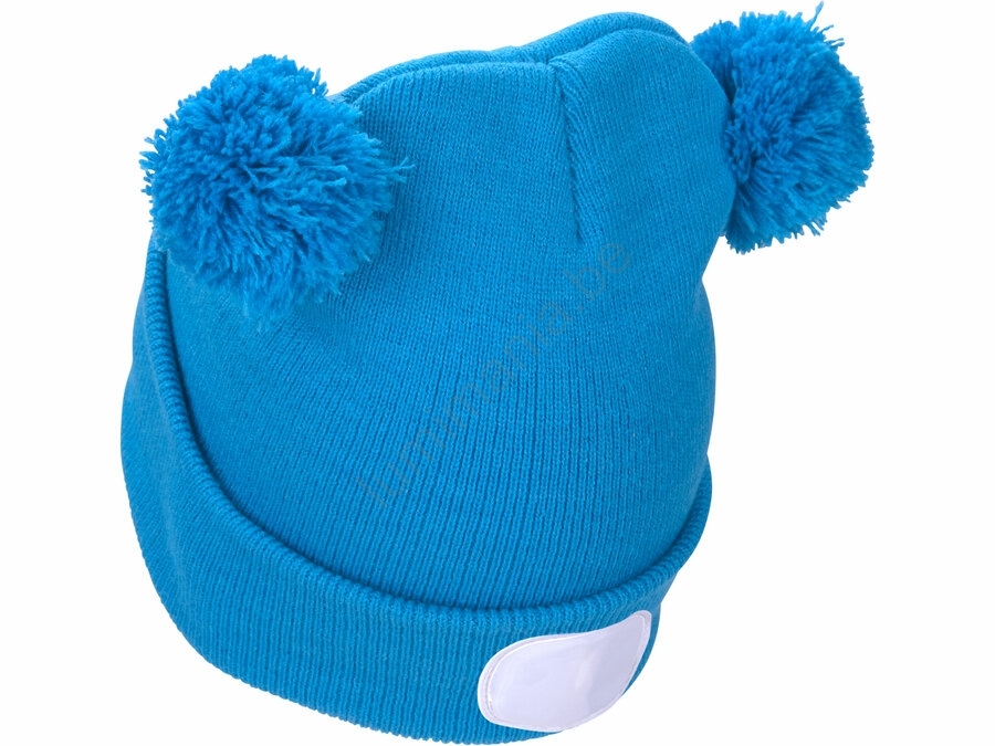 Extol - Bonnet enfant avec lampe frontale intégrée, batterie rechargeable 250 mAh via USB, bleu à pompons