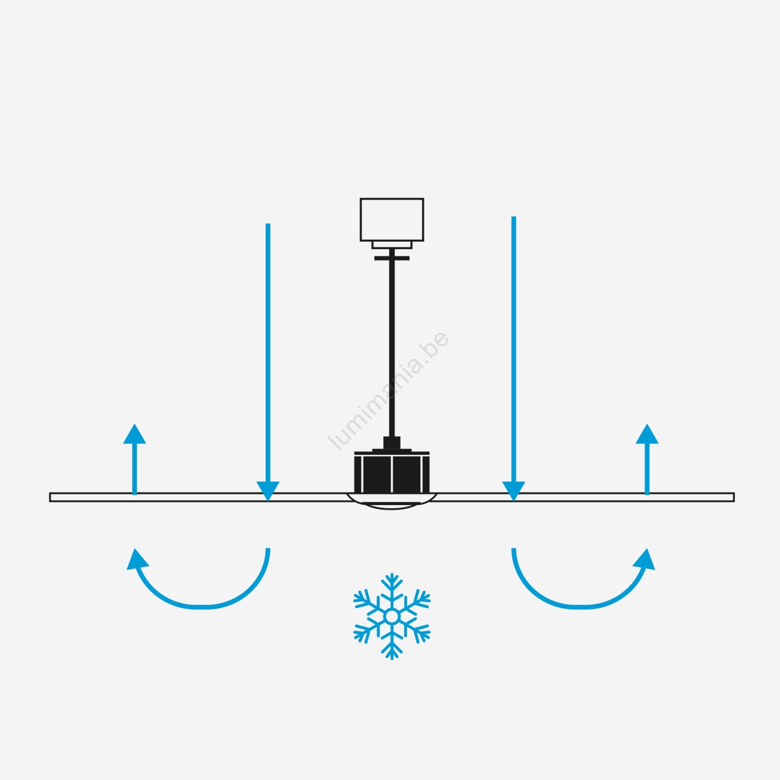 • Ce ventilateur dispose d'une fonction réversible été/hiver, vous pouvez donc l'utiliser en hiver (jusqu'à 20 % d'économie sur les coûts de chauffage).