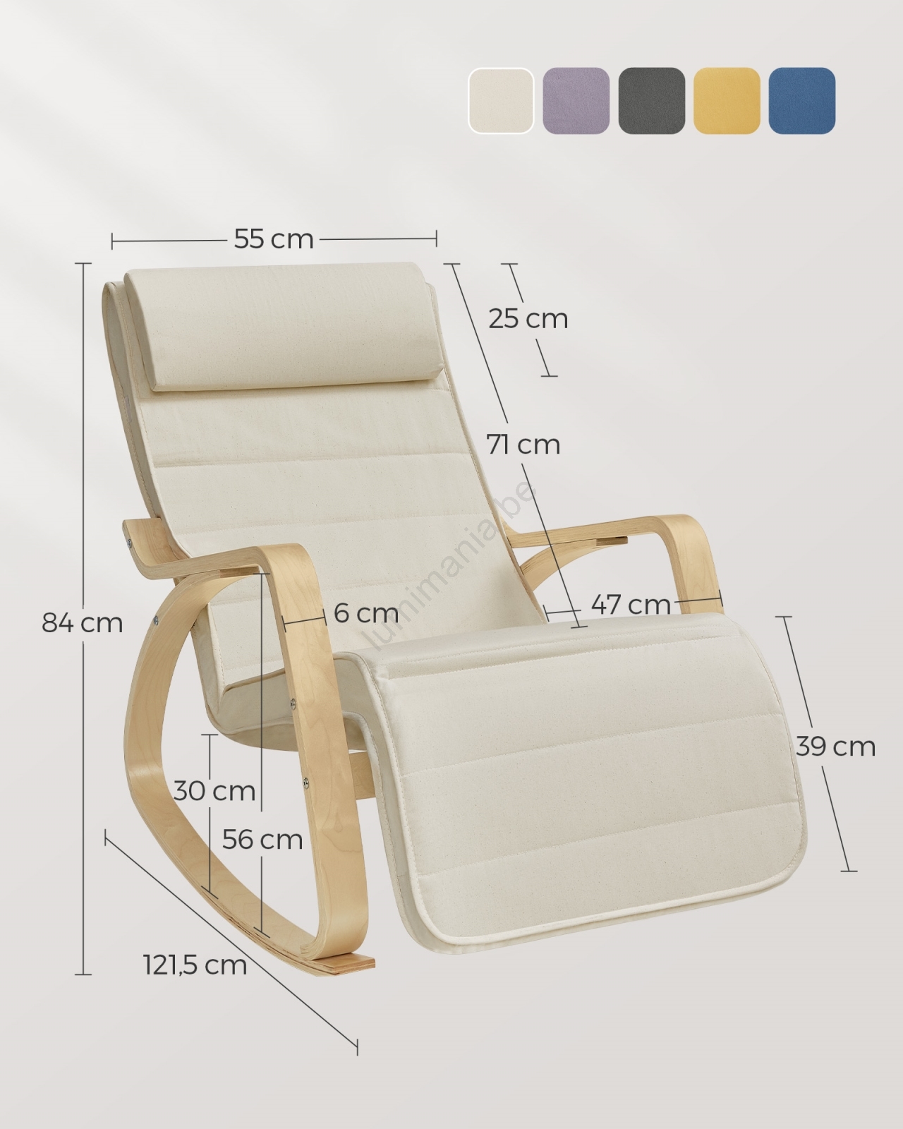 • Le fauteuil à bascule est fabriqué en bois résistant de haute qualité et en coton 100 %.