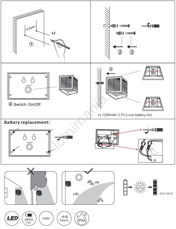 Globo - Éclairage solaire LED/6W/3,2V 3000K IP54 1300 mAh