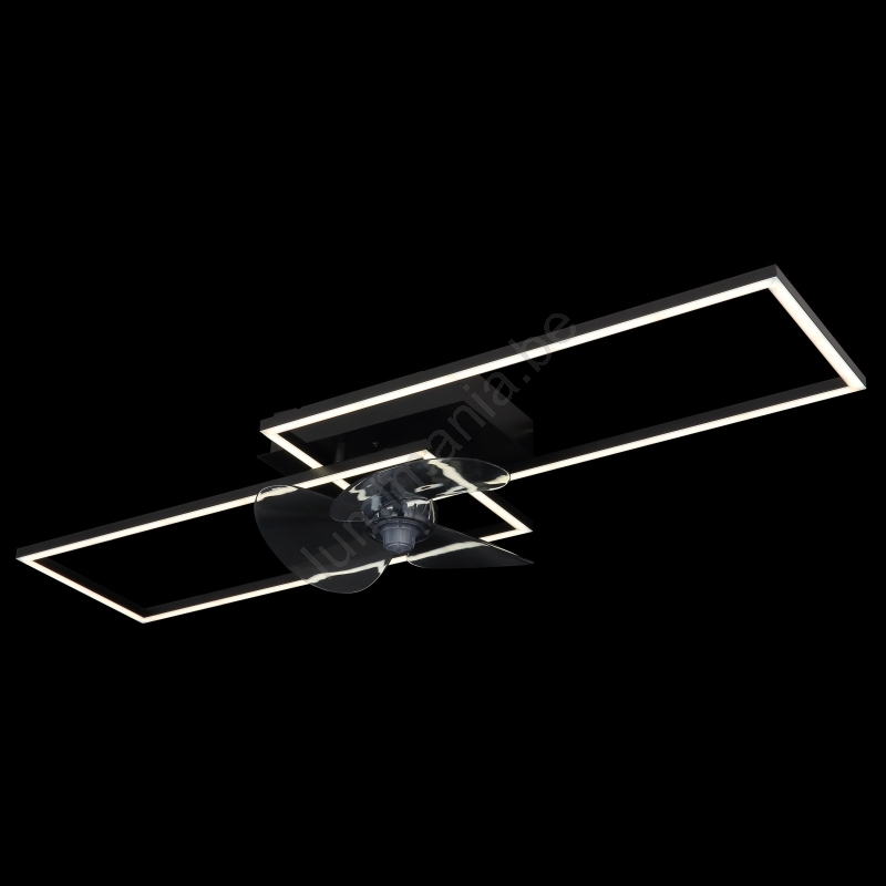 • Ventilateur de plafond au design soigné, finition noir mat et détails opalescents.