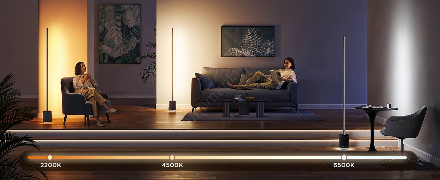• Profitez de transitions colorées ainsi que de nuances de blanc chaud et froid dans une plage de 2200K à 6500K.