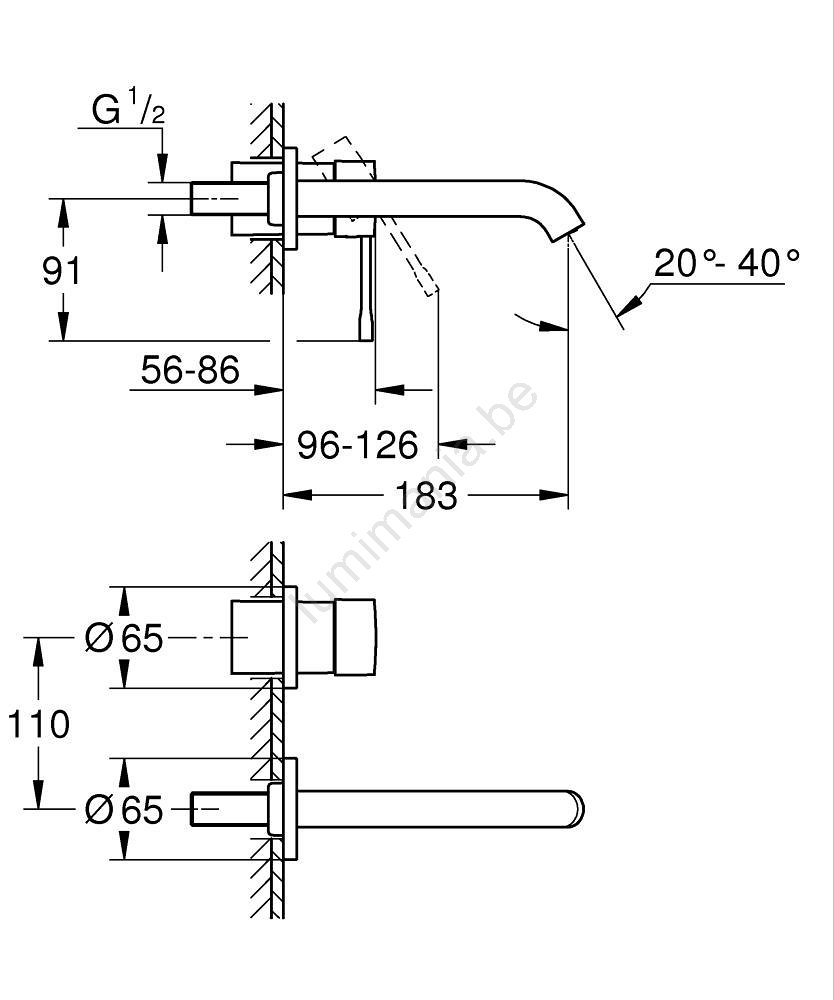 • Entraxe entre les centres des trous : 110 mm, longueur du bec : 183 mm.