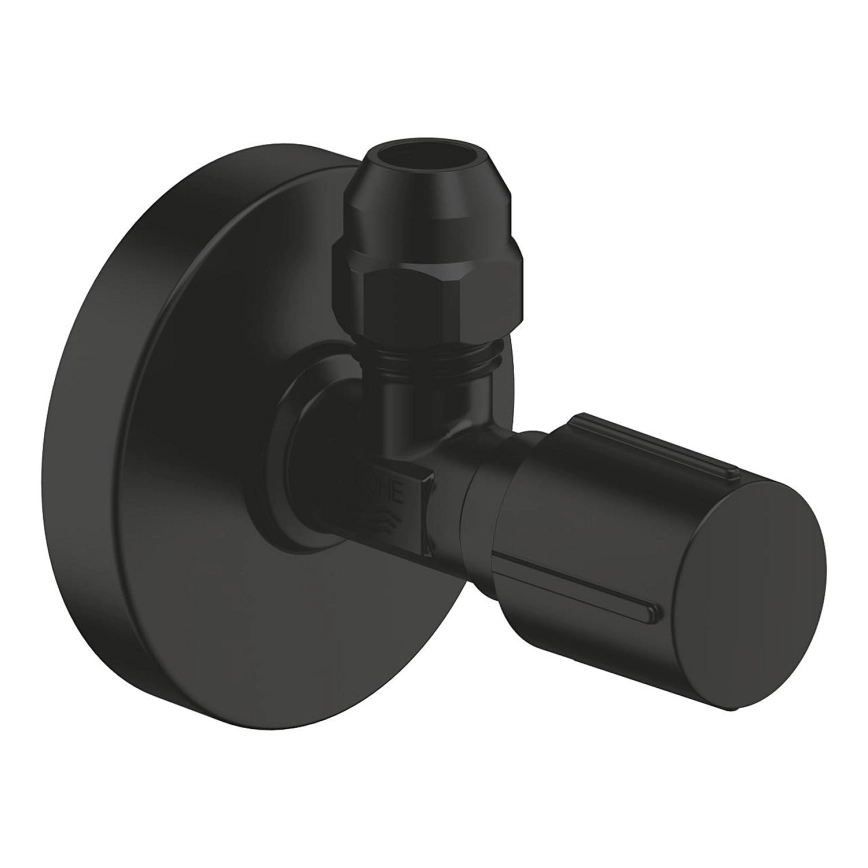 • Robinet d'arrêt d'angle GROHE au design élégant en noir mat, idéal pour les salles de bains modernes.