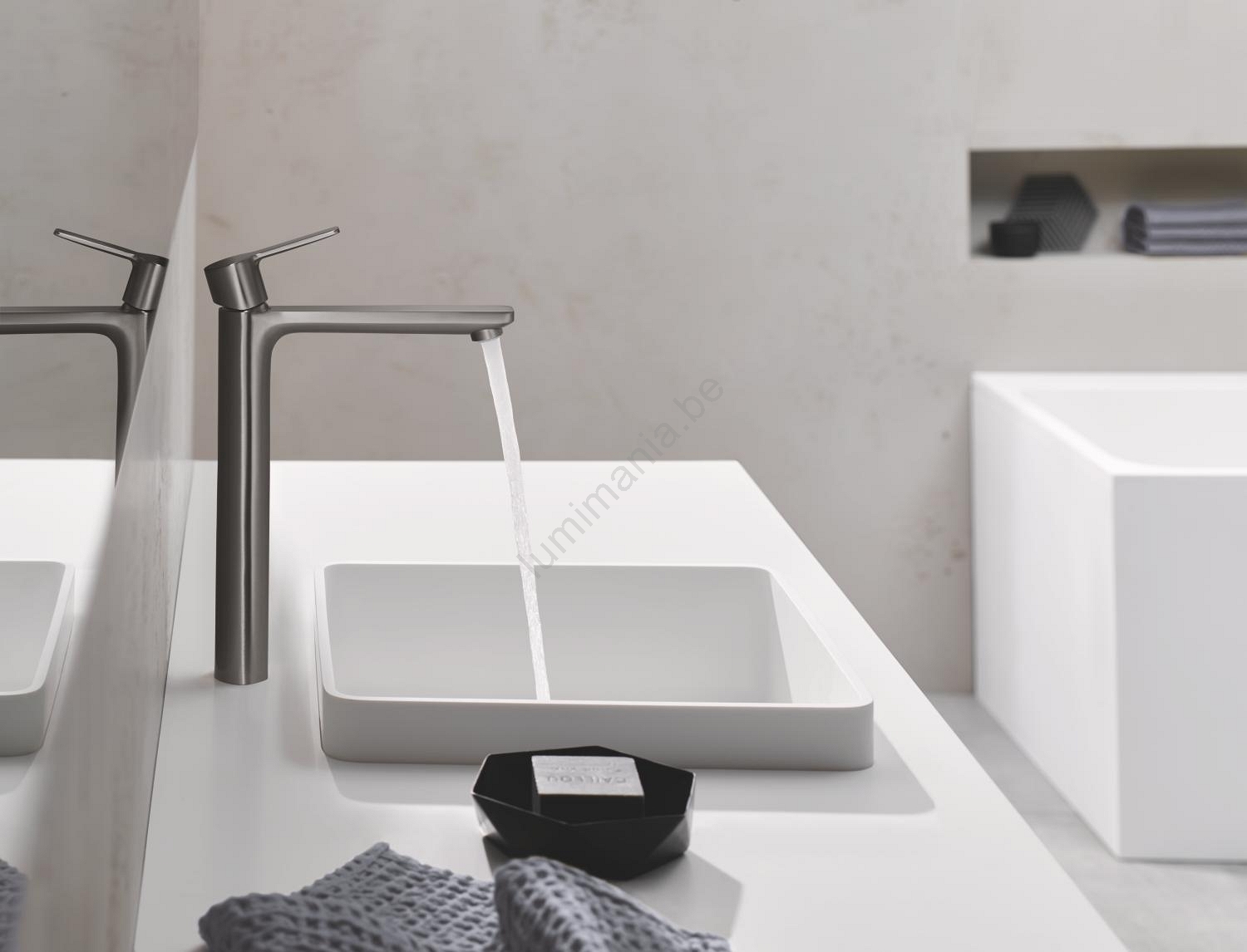 • Mitigeur lavabo à levier élégant GROHE Lineare avec bec extra-haut, idéal pour vasques autoportantes.