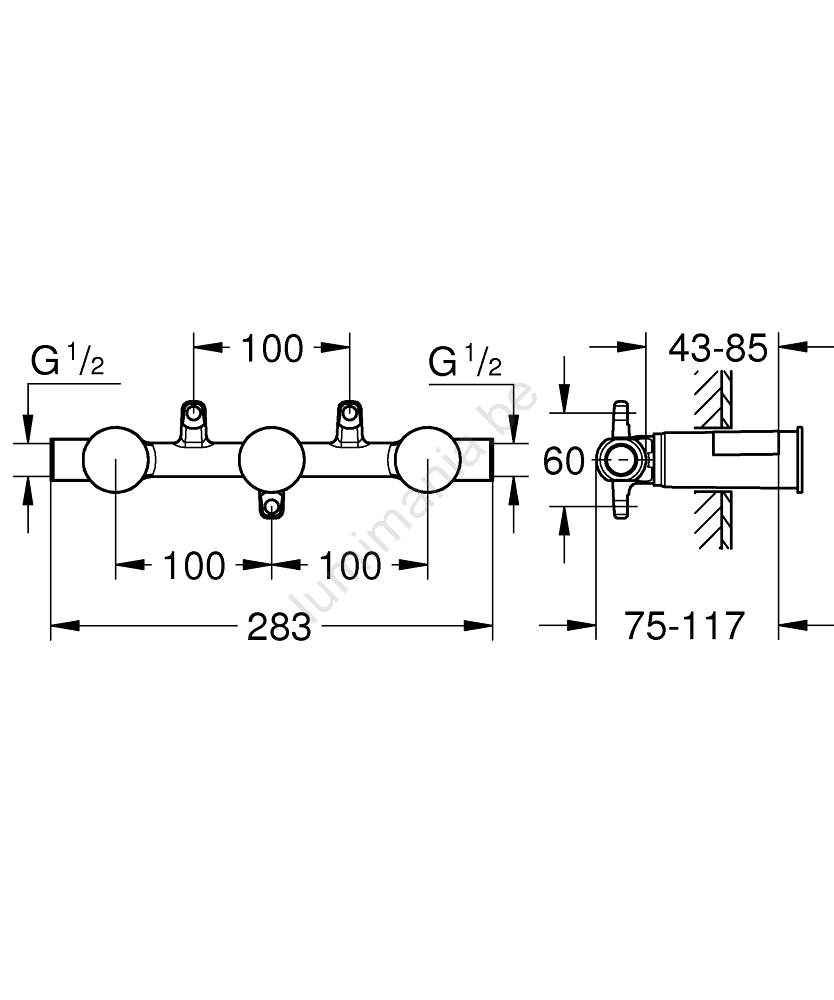 • Profondeur d'encastrement réglable de 43 à 85 mm.