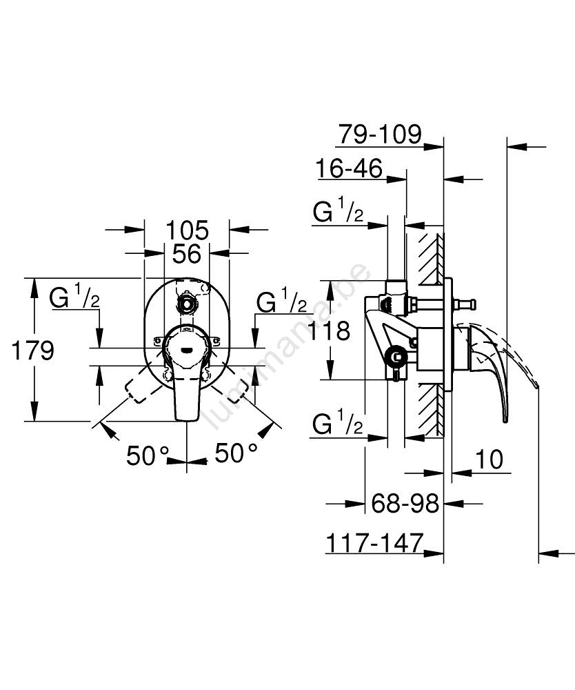 • Cartouche céramique GROHE Long-Life 46 mm pour une durabilité et une fiabilité accrues.