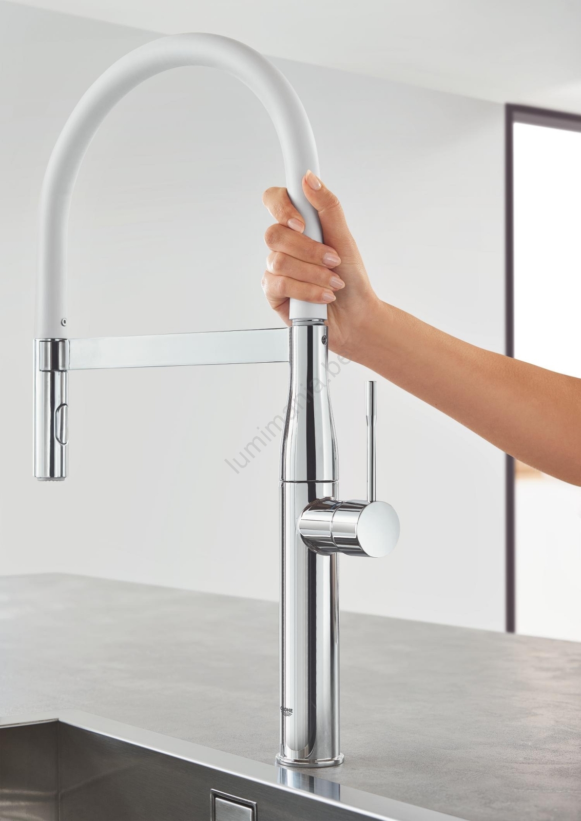• Douchette professionnelle avec flexible de cuisine hygiénique GROHFlexx en santoprène.