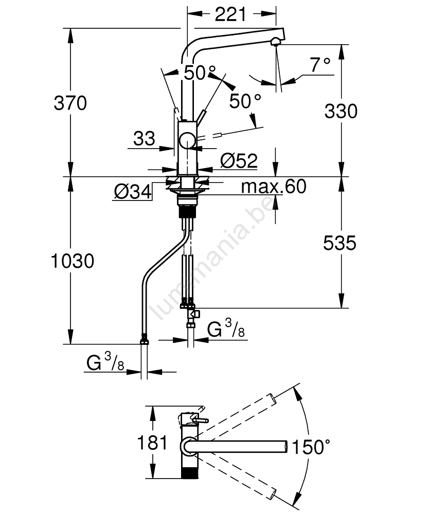 • Bec en L élégant avec un angle de rotation de 150° pour remplir facilement de grandes casseroles et carafes.