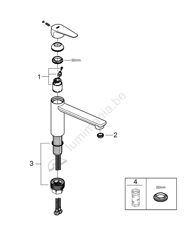 • Cartouche céramique GROHE Long-Life 35 mm pour un contrôle fluide et précis du débit et de la température de l'eau.