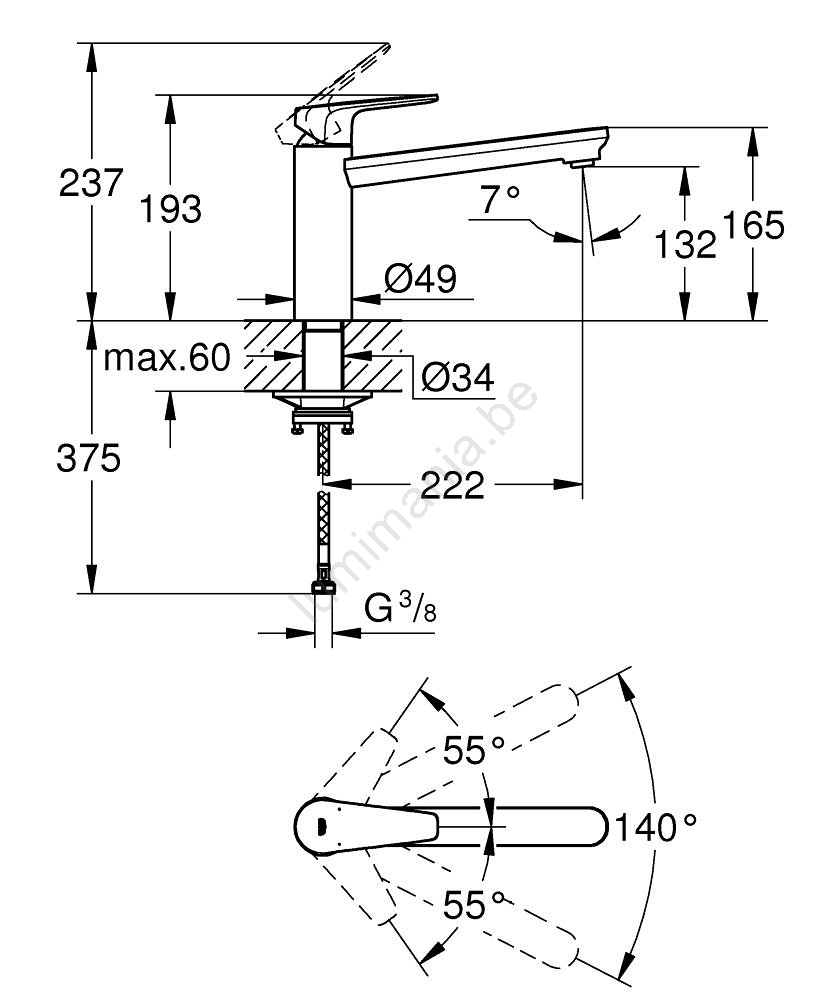 • Bec tubulaire pivotant avec un angle de rotation de 140° pour une plus grande flexibilité.