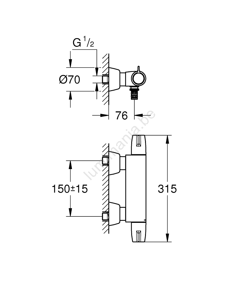 • Mitigeur thermostatique mural de type médical pour une installation facile.