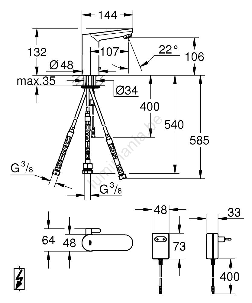 GROHE 36324001 - Robinet pour lavabo électronique à détection infrarouge EUROSMART COSMOPOLITAN E chromé
