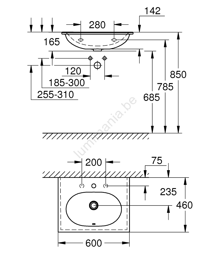 • Dimensions 600 × 460 mm, idéales pour l'encastrement dans un meuble de salle de bains.