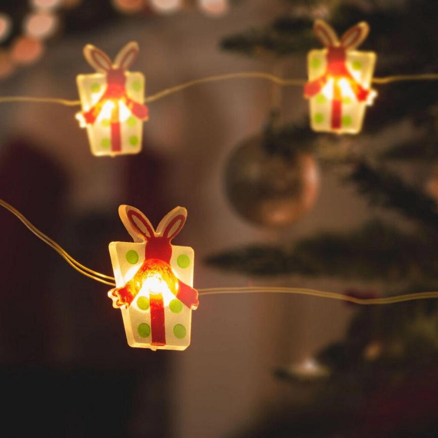 • Guirlande LED décorative avec des points lumineux en forme de cadeaux de Noël.