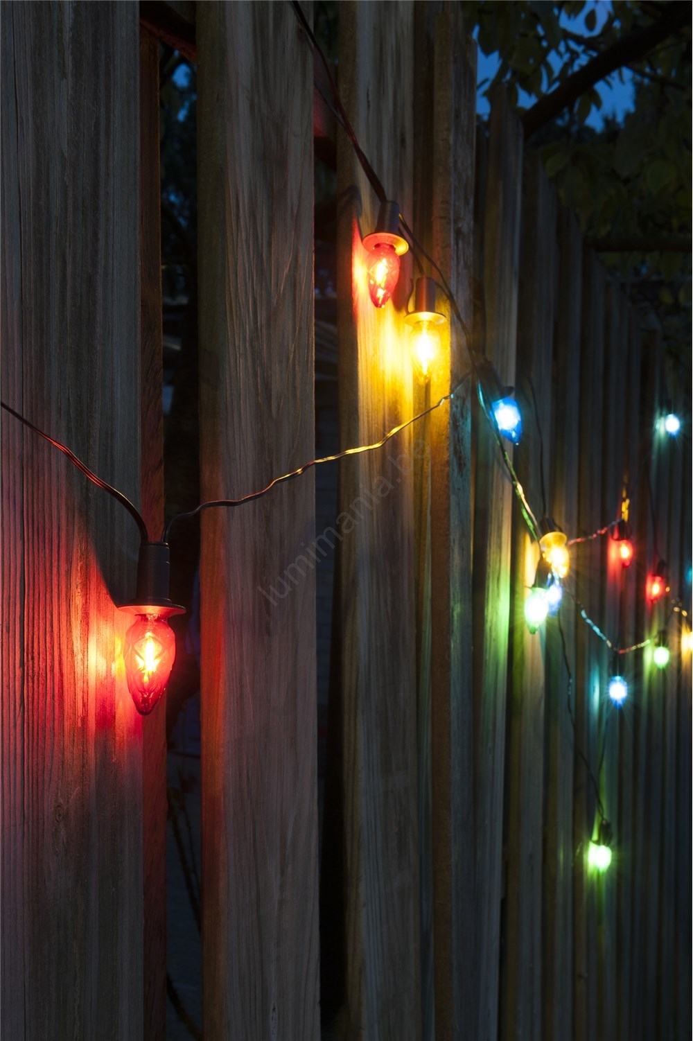 Guirlande LED d'extérieur CONE FILAMENT 20xE10, 19 m — multicolore / blanc chaud, IP44, fabriquée dans l'UE