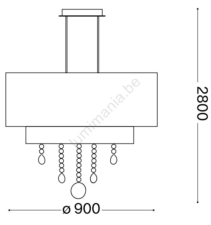 • La base métallique est complétée par deux abat-jour en feuille de PVC, qui sont insérés l'un dans l'autre. Les abat-jour sont décorés de fils métalliques fins de couleur blanche et de pendentifs en cristal taillé.