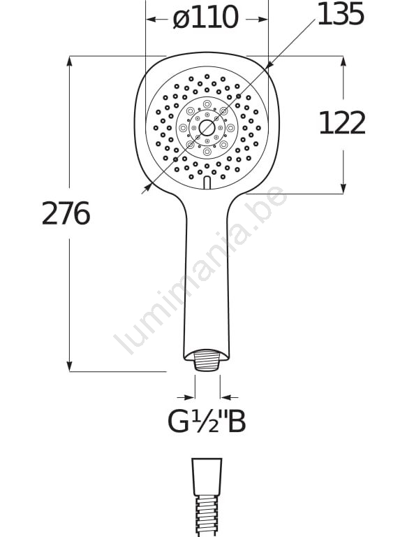 • Pommeau de douche manuel de dimensions 13 x 13 cm.