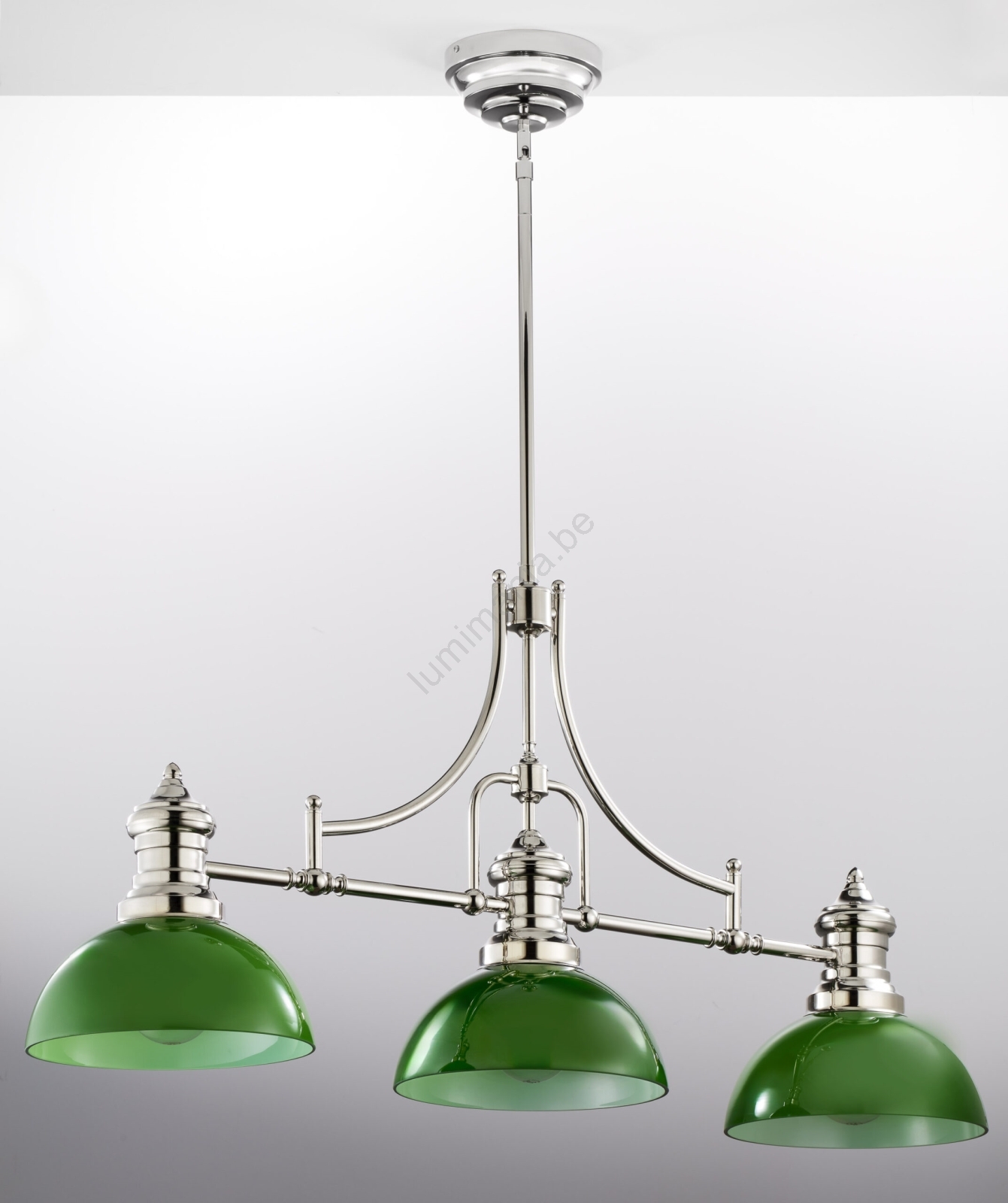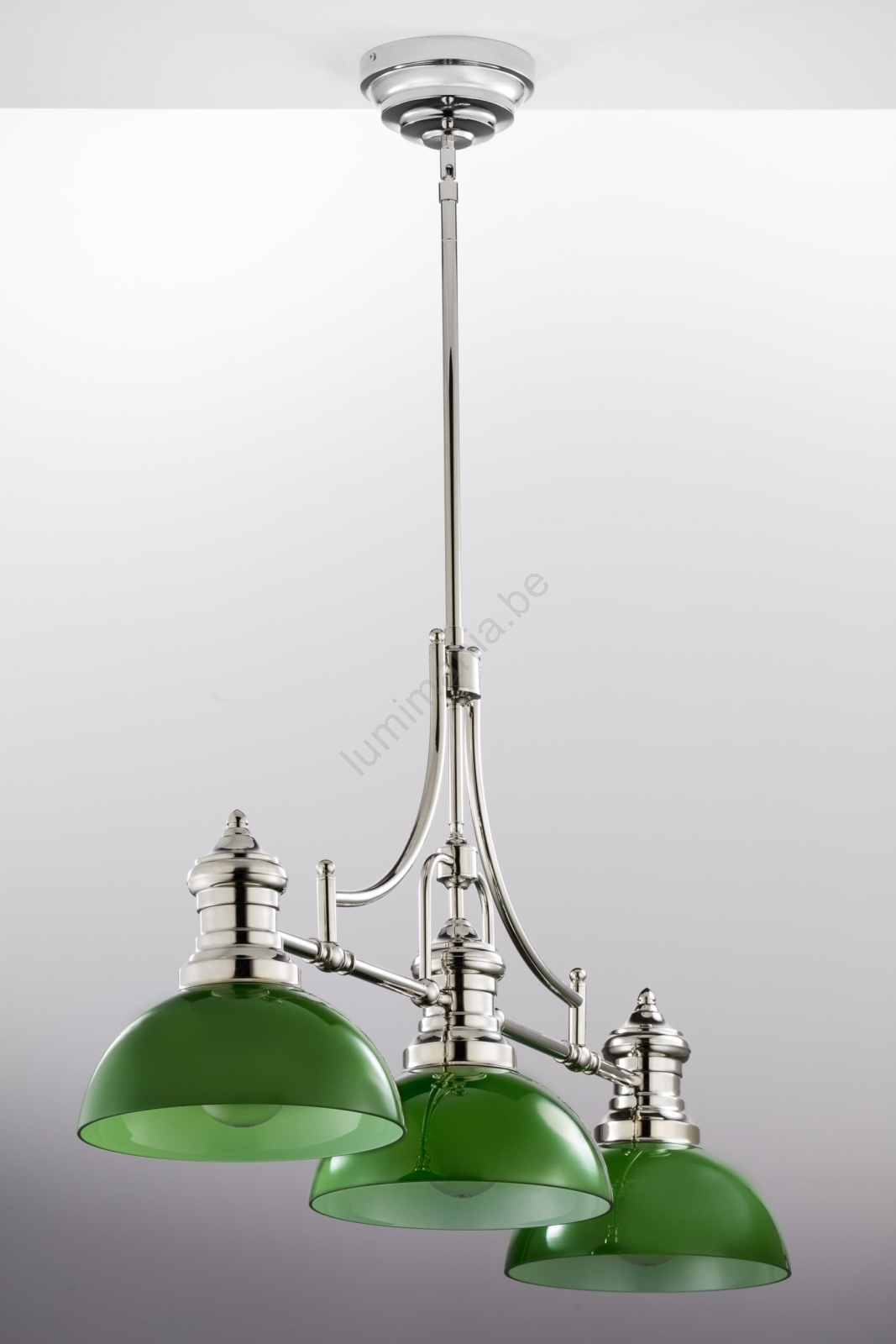 Jupiter 2072 - Lustre sur tige PLATINO 3xE27/15W/230V vert/chrome brillant caractérise un design agréable et fonctionnel.  Une ampoule à culot E27 convient pour ce luminaire. Ici, vous pouvez acheter d'autres ampoules à des prix avantageux. Vous aurez un ajout intéressant dans votre intérieur.