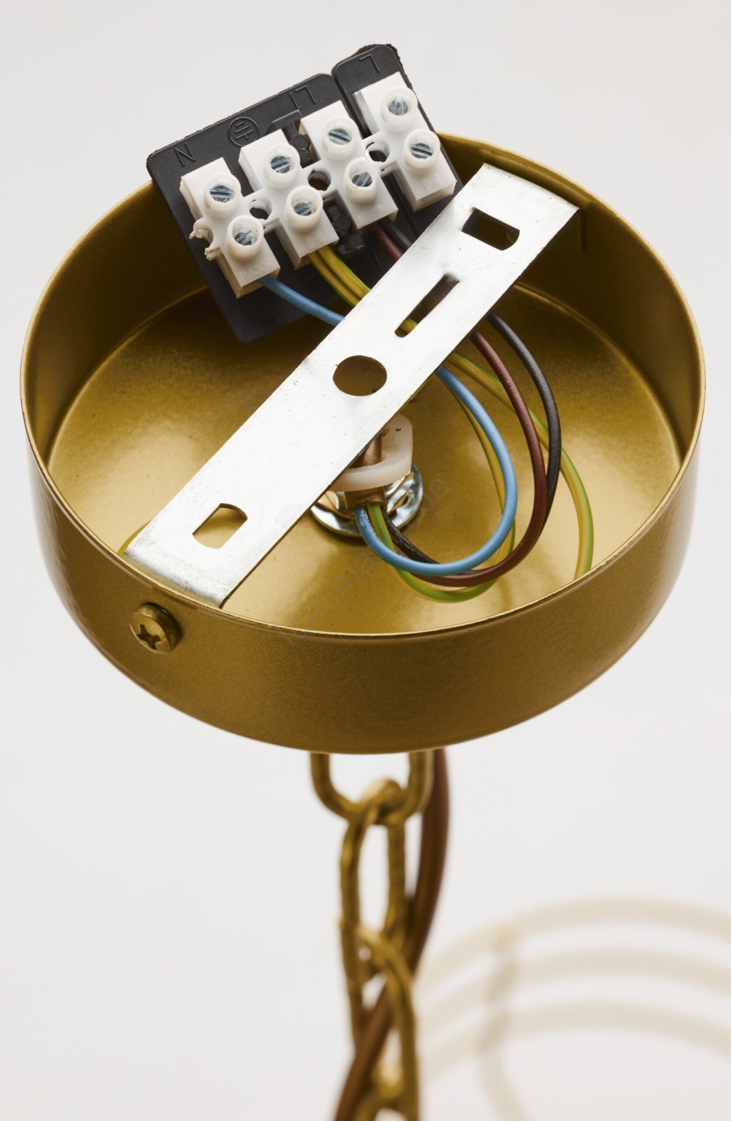 Jupiter 2095 - Lustre à chaîne ARTHUR 6xE27/15W/230V bleu/doré caractérise un design agréable et fonctionnel.  Une ampoule à culot E27 convient pour ce luminaire. Ici, vous pouvez acheter d'autres ampoules à des prix avantageux. Vous aurez un ajout intéressant dans votre intérieur.