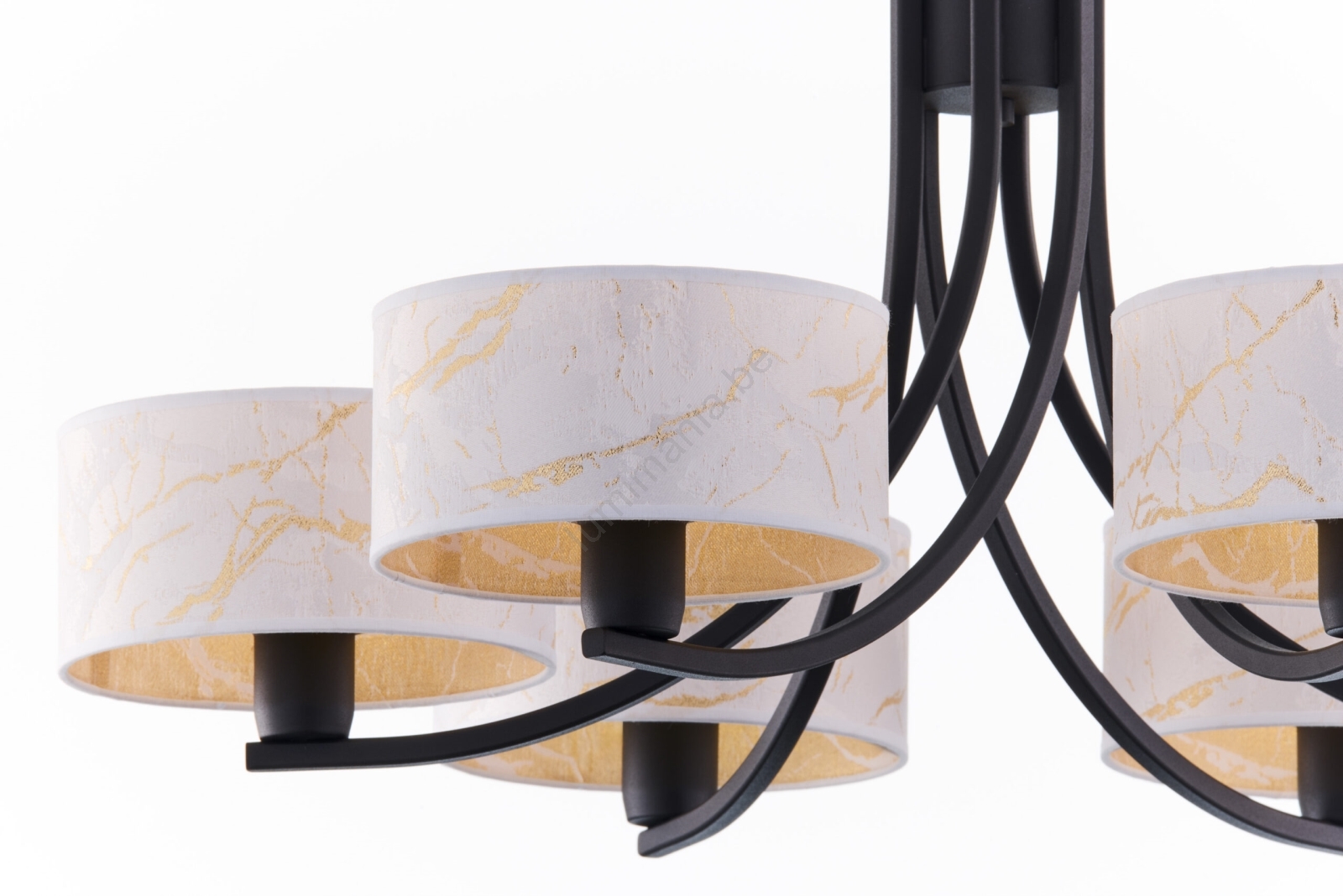 Jupiter 2105 - Lustre à chaîne ARTHUR 6xE27/15W/230V blanc/noir/décor marbre caractérise un design agréable et fonctionnel.  Une ampoule à culot E27 convient pour ce luminaire. Ici, vous pouvez acheter d'autres ampoules à des prix avantageux. Vous aurez un ajout intéressant dans votre intérieur.