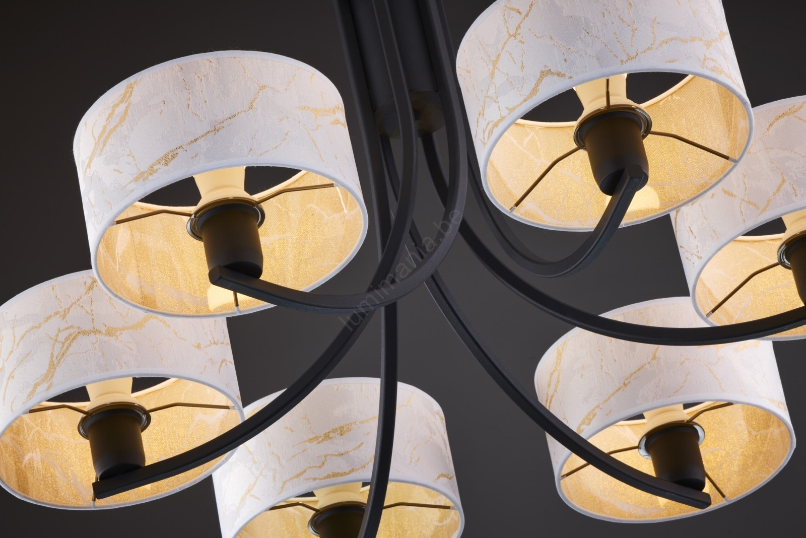 Jupiter 2105 - Lustre à chaîne ARTHUR 6xE27/15W/230V blanc/noir/décor marbre