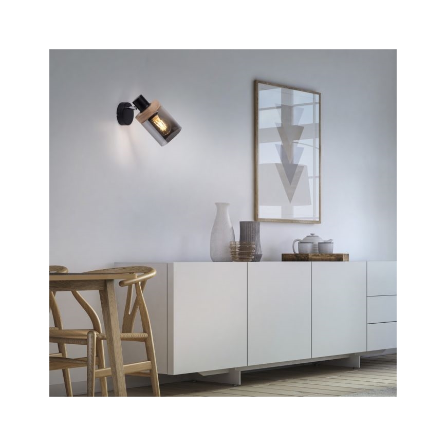 JUST LIGHT. 11311-18 - Spot mural PASQUAL 1xE27/40W/230V noir/hévéa
