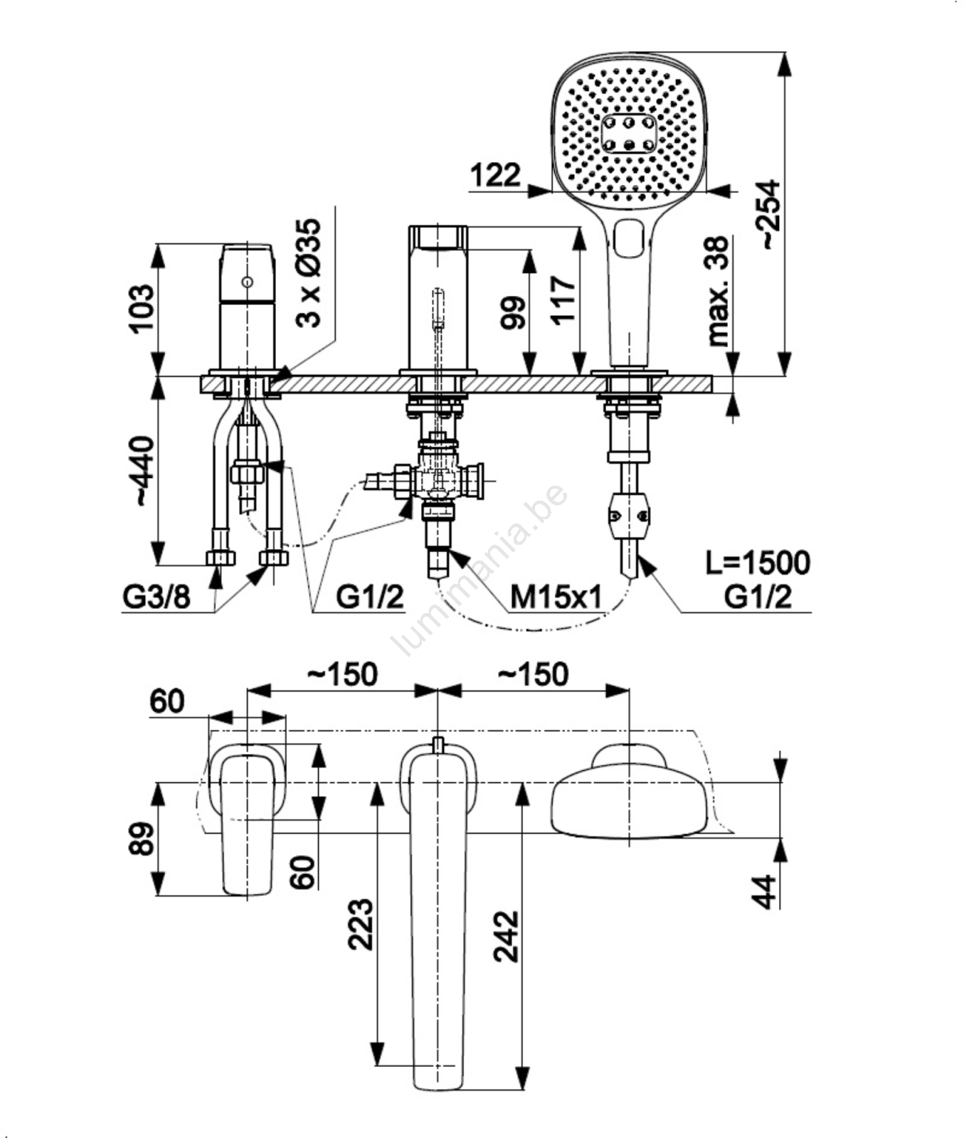 • Ce mitigeur de baignoire 3 trous est un accessoire élégant pour toute salle de bain.