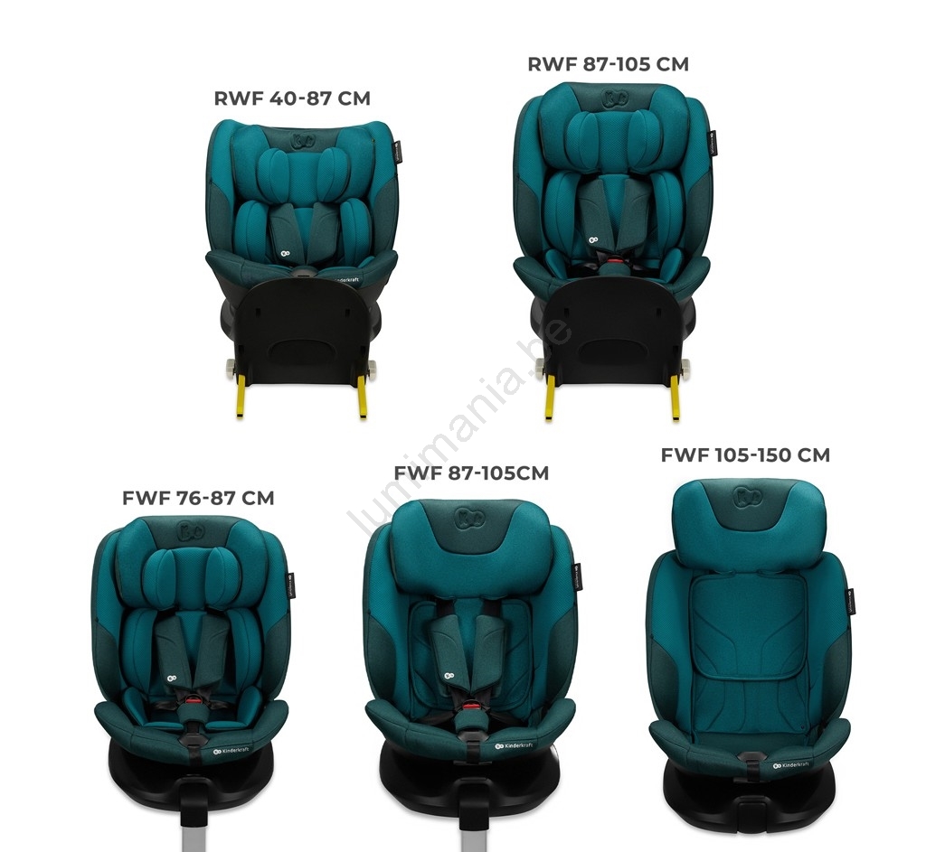 • Le voyage dos à la route (RWF) est possible jusqu'à quatre ans, augmentant considérablement la sécurité en cas de choc frontal.