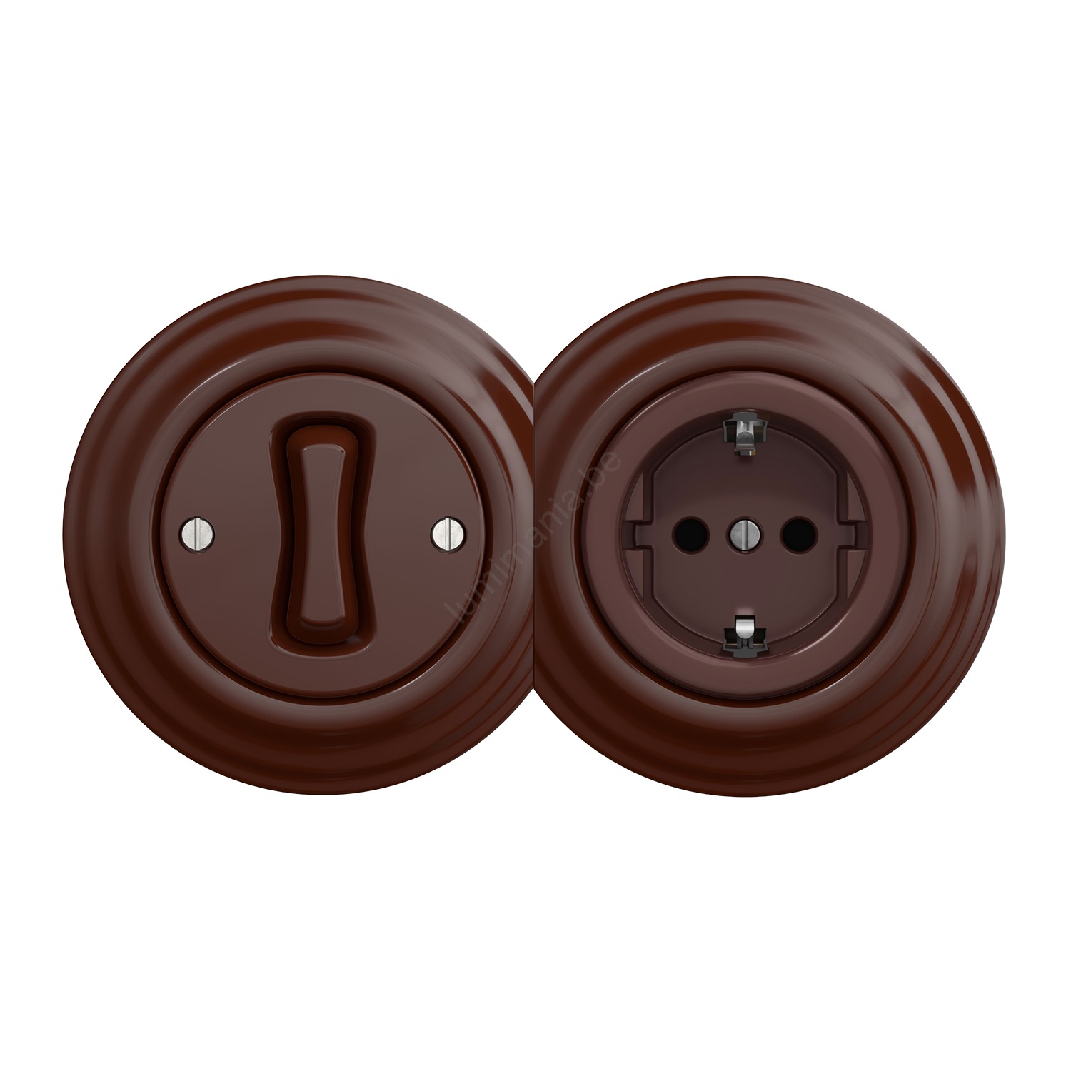 Kliklap - Interrupteur unipolaire rétro n° 1 et prise SCHUKO 230 V avec cadre, finition marron