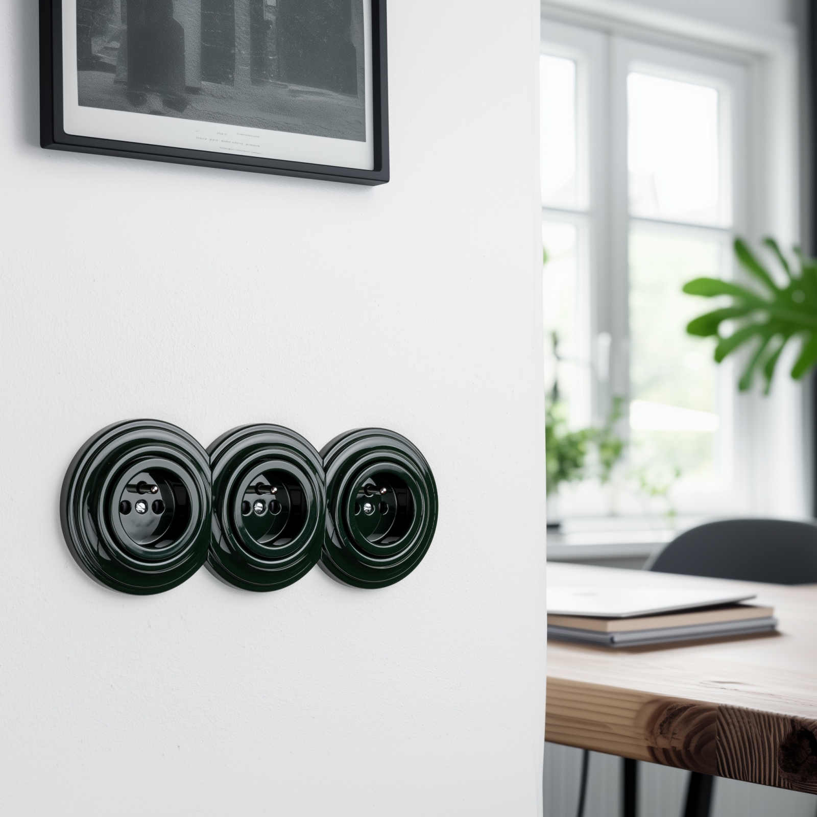 • Kliklap - Prise murale triple rétro avec cadre, 230 V, verte