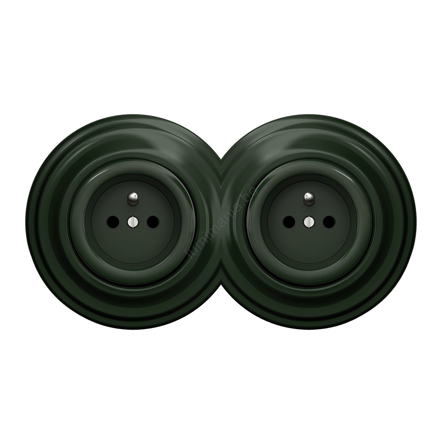 Kliklap - Prise double rétro avec cadre 230 V, verte