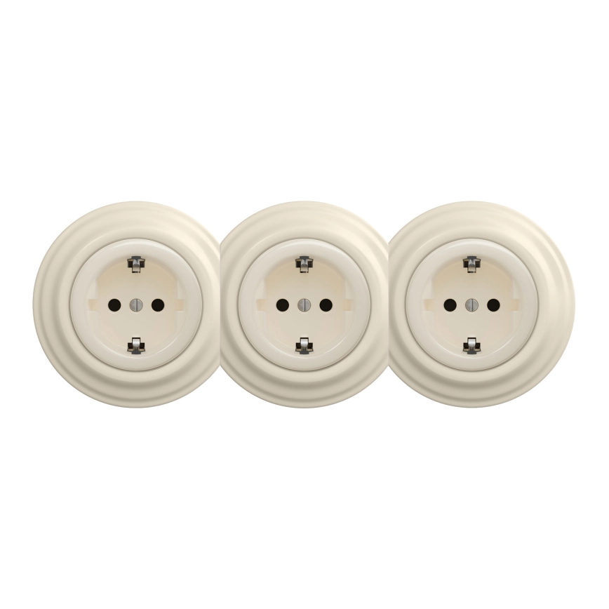Kliklap - Prise murale triple rétro avec cadre SCHUKO 230V beige