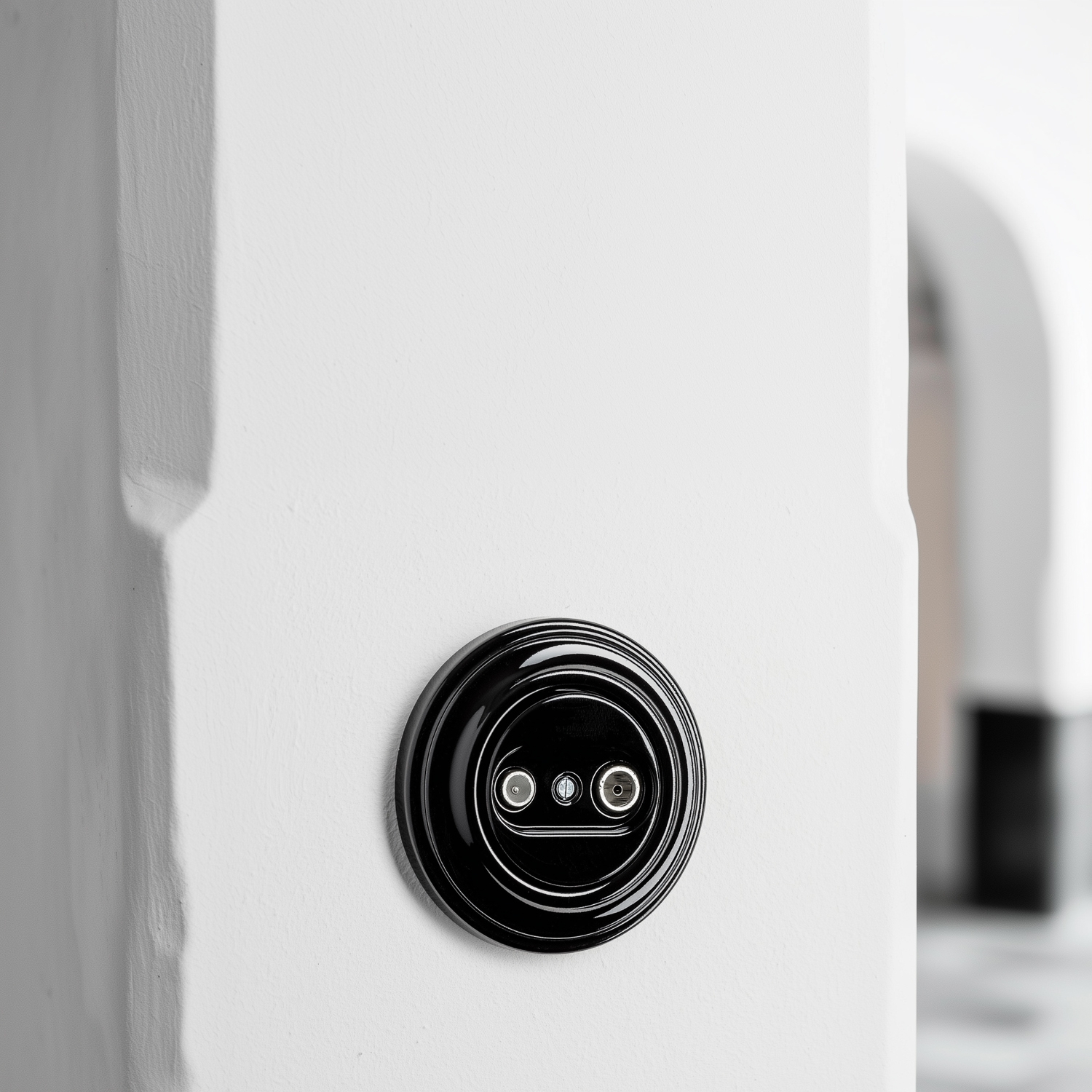 • Kliklap - Prise murale terminale TV+R au design rétro avec cadre en céramique blanche