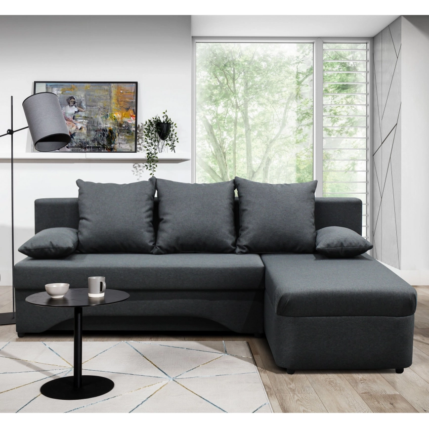 Canapé d'angle convertible universel en L avec coffre de rangement ALMEIDA — anthracite