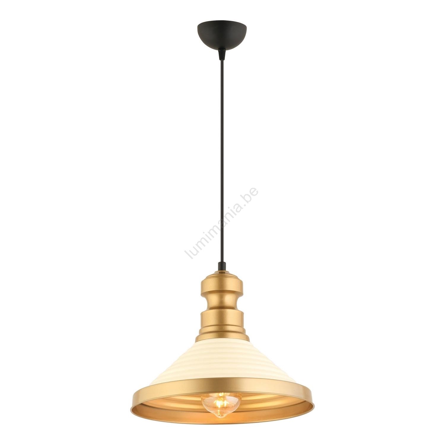 Suspension sur câble MONZA 1xE27/40W/230V Ø 30 cm crème/doré caractérise un design agréable et fonctionnel.  Une ampoule à culot E27 convient pour ce luminaire. Ici, vous pouvez acheter d'autres ampoules à des prix avantageux. Vous aurez un ajout intéressant dans votre intérieur.