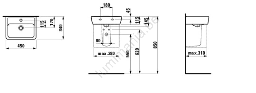 • L'emballage contient le lavabo sans siphon ni robinet.