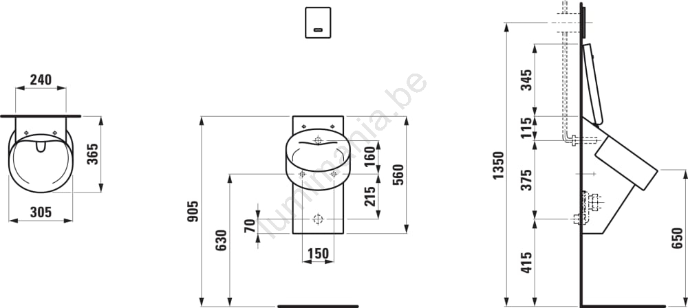 • L'urinoir est équipé de trous de montage pour un couvercle (non fourni).