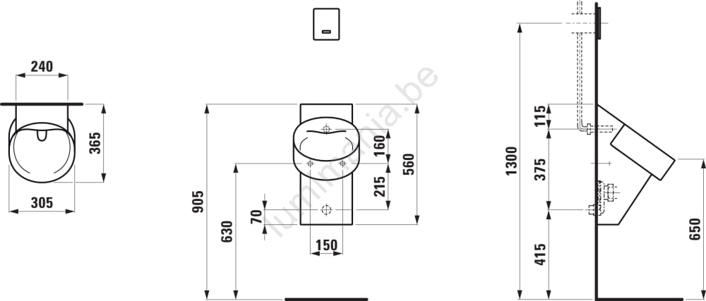 • Urinoir sans rebord, qui élimine les zones propices à l'accumulation de saletés et de bactéries.