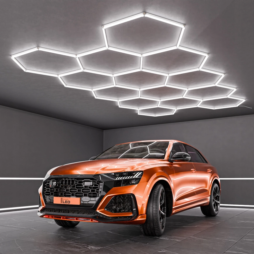 • Grâce à sa structure hexagonale, l'éclairage fait office à la fois d'élément esthétique et de système lumineux fonctionnel.